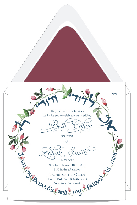 Watercolor Wreath I am My Beloved Wedding Invitation